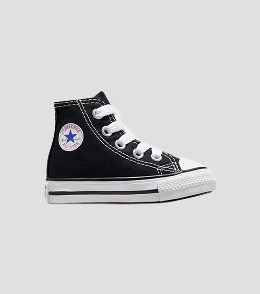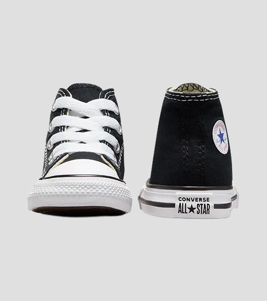 The Converse Chuck Taylor All Star Classic Infants in Black are iconic low-top sneakers made for infants. They feature a lightweight and durable canvas upper in classic black, providing comfort and flexibility for tiny feet.