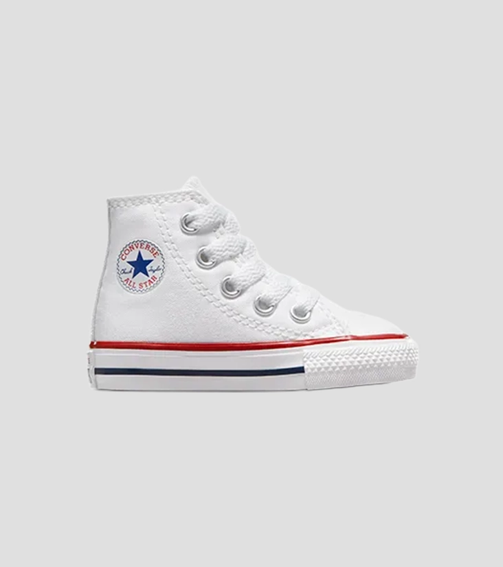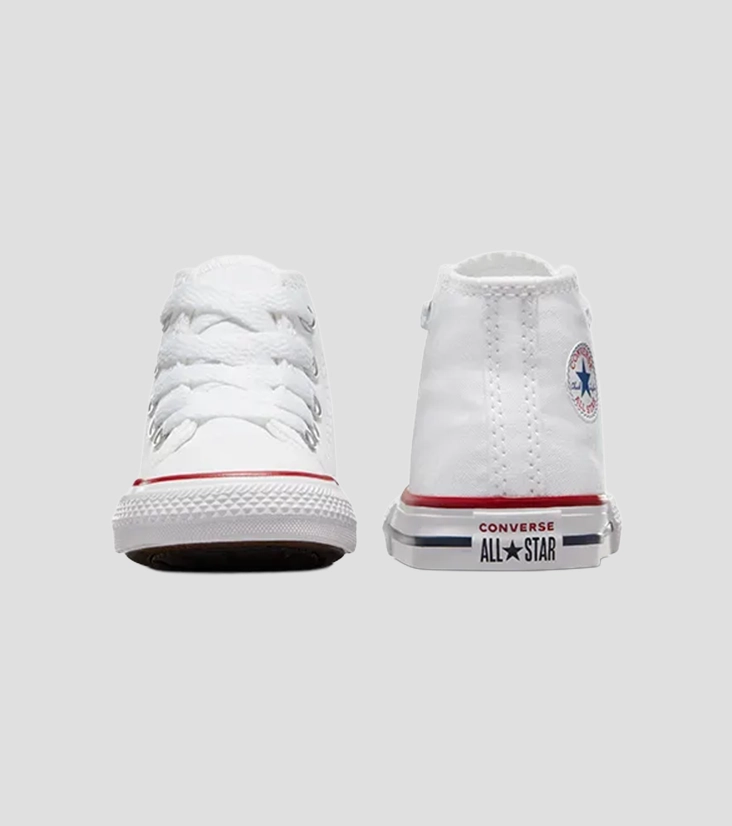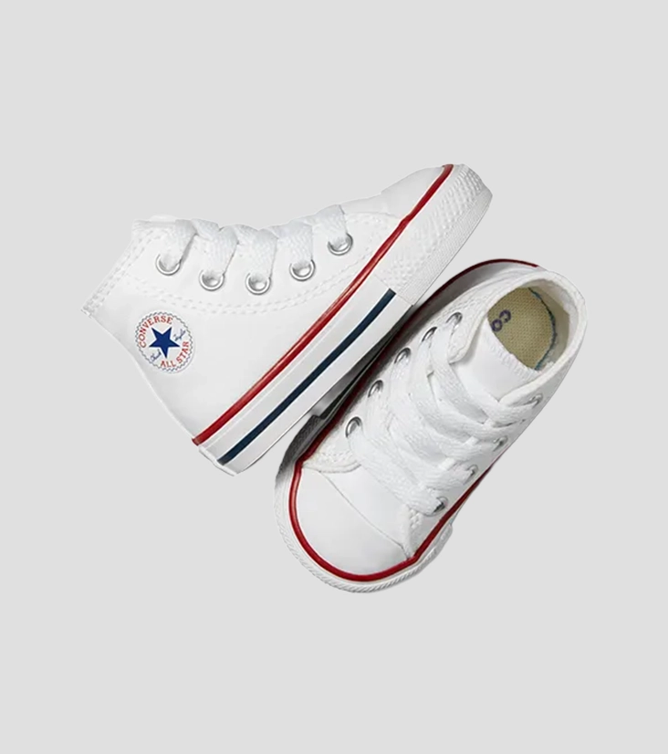 The Converse Chuck Taylor All Star Classic Infants in White are iconic low-top sneakers designed specially for infants. They feature a soft, flexible canvas upper which provides lightweight comfort and durability for growing feet.