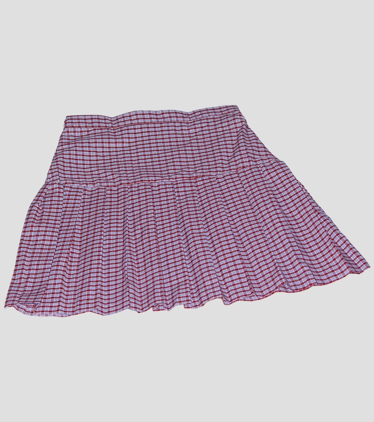 Fully Pleated Check Skirt (Lk)- White/Red/Check