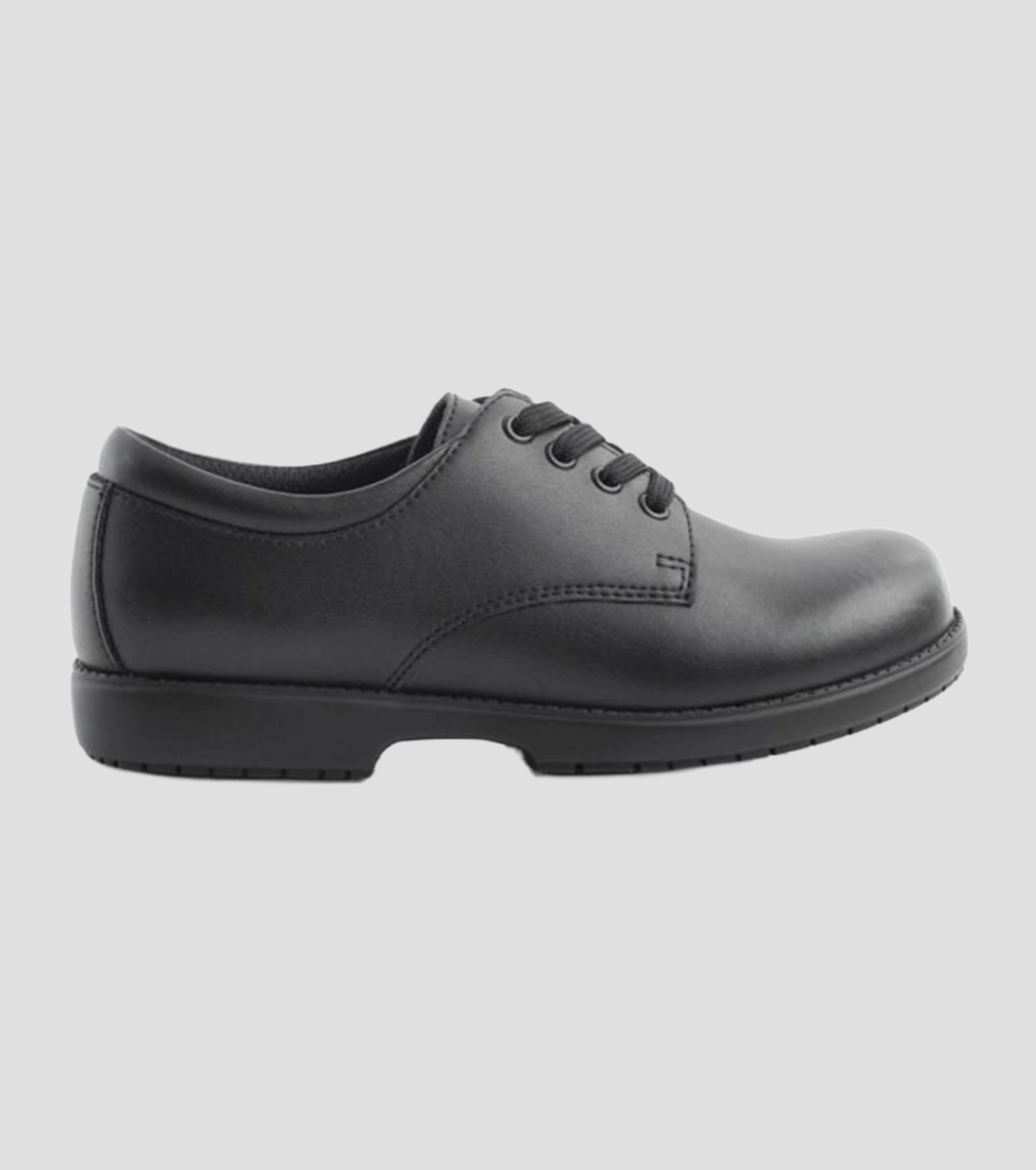 Inside, the Cambrelle lining and footbed provide breathability and cushioning. The 4mm latex cushioning insole adds extra comfort for long school days. The outsole is made of TPR and stitched to the upper for added strength and longevity. These shoes are ideal for daily wear, combining traditional style with practical durability. The nylon laces use metal eyelets for secure fastening.