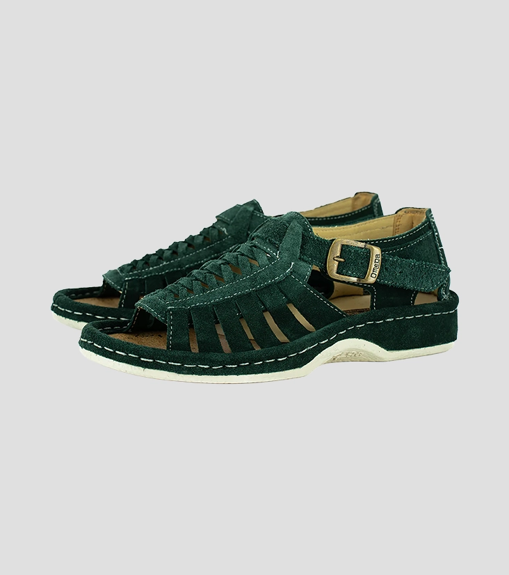 Omega Kgosi Okom021: Leather Sandal In Forest Suede