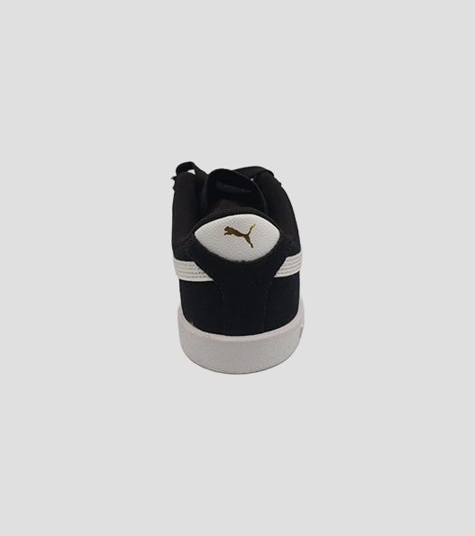 The Puma Club II Jr Black/White is a stylish sneaker inspired by the classic football heritage Puma is known for. It features a smooth suede and leather upper, combining durability with a clean, sporty look. The shoe’s bold white Puma Formstrip on the sides contrasts sharply against the black background, adding a fresh and iconic branding touch. It has a lace-up closure for a secure and adjustable fit.