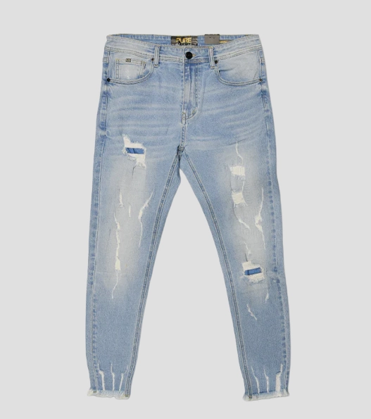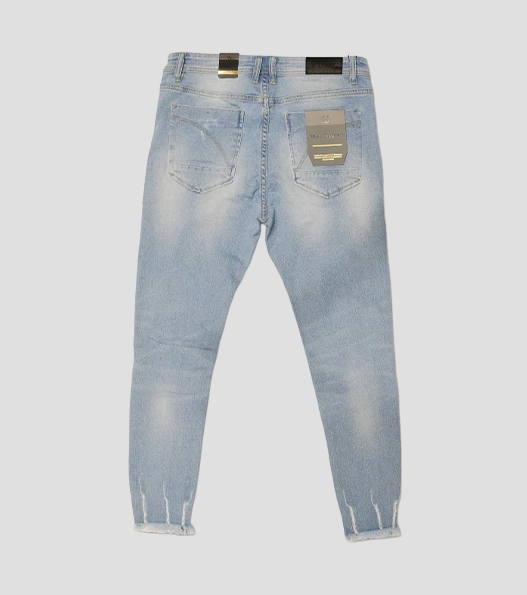 The Pure Premium Alesso Light Blue Jeans for men are designed for a modern and relaxed look with a cropped length that adds a contemporary, laid-back vibe.