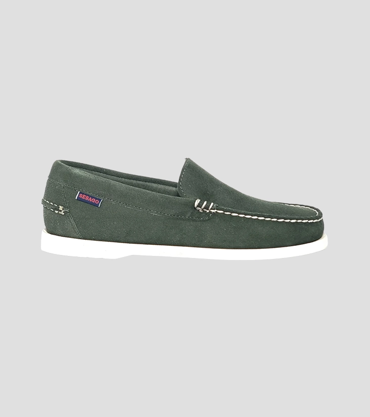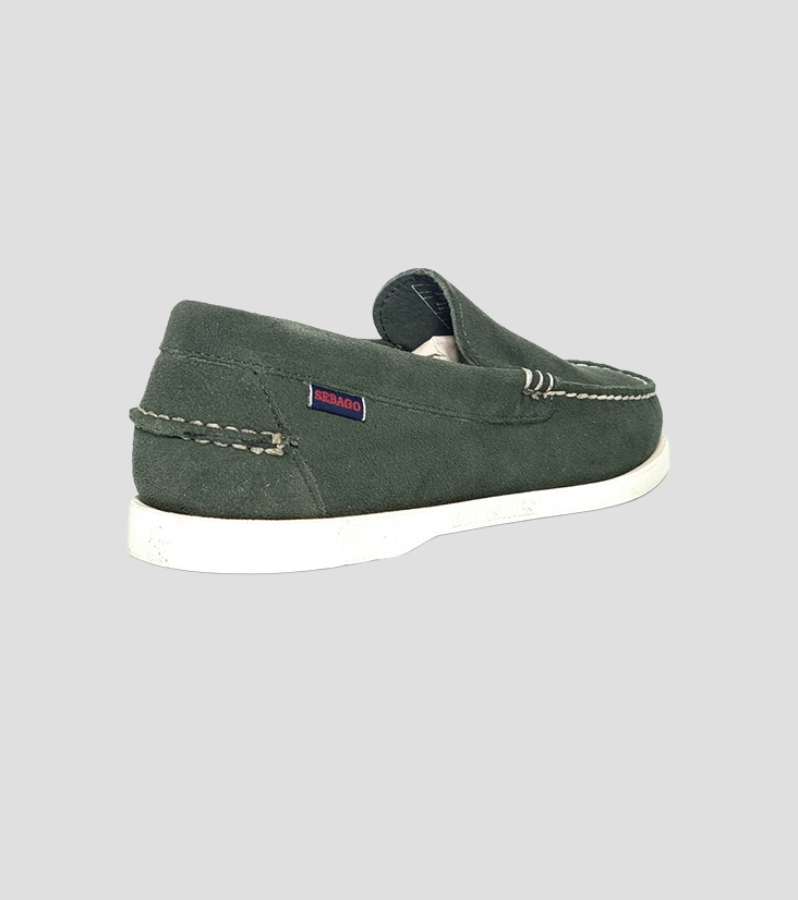 The Sebago Frank Boat Flesh Out in Green Dark Depths is a premium boat shoe crafted with high-quality cowhide suede upper that combines durability with timeless style.
