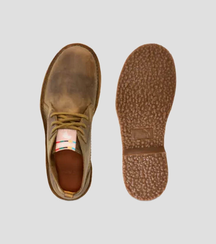 The Puma Terrae Mid Africa Zadp in Olive is a rugged, stylish boot designed for outdoor adventures and everyday wear. It features a mid-cut design with a lace-up closure for a secure fit. The upper is crafted from genuine leather with a textured finish, offering durability and an earthy look. Additionally, contrast stitching and African-inspired accents add unique style. The rubber outsole ensures solid grip and traction on various terrains. A convenient pull tab at the heel makes it easy to slip on and off. This boot perfectly blends practicality, comfort, and a touch of cultural flair for active and urban lifestyles.