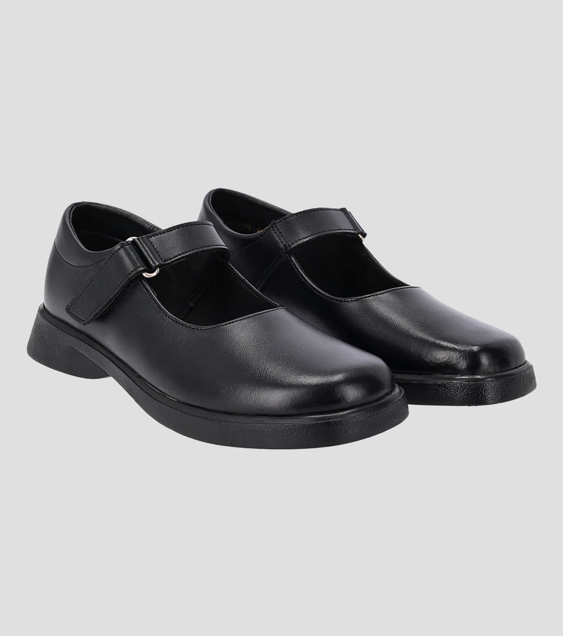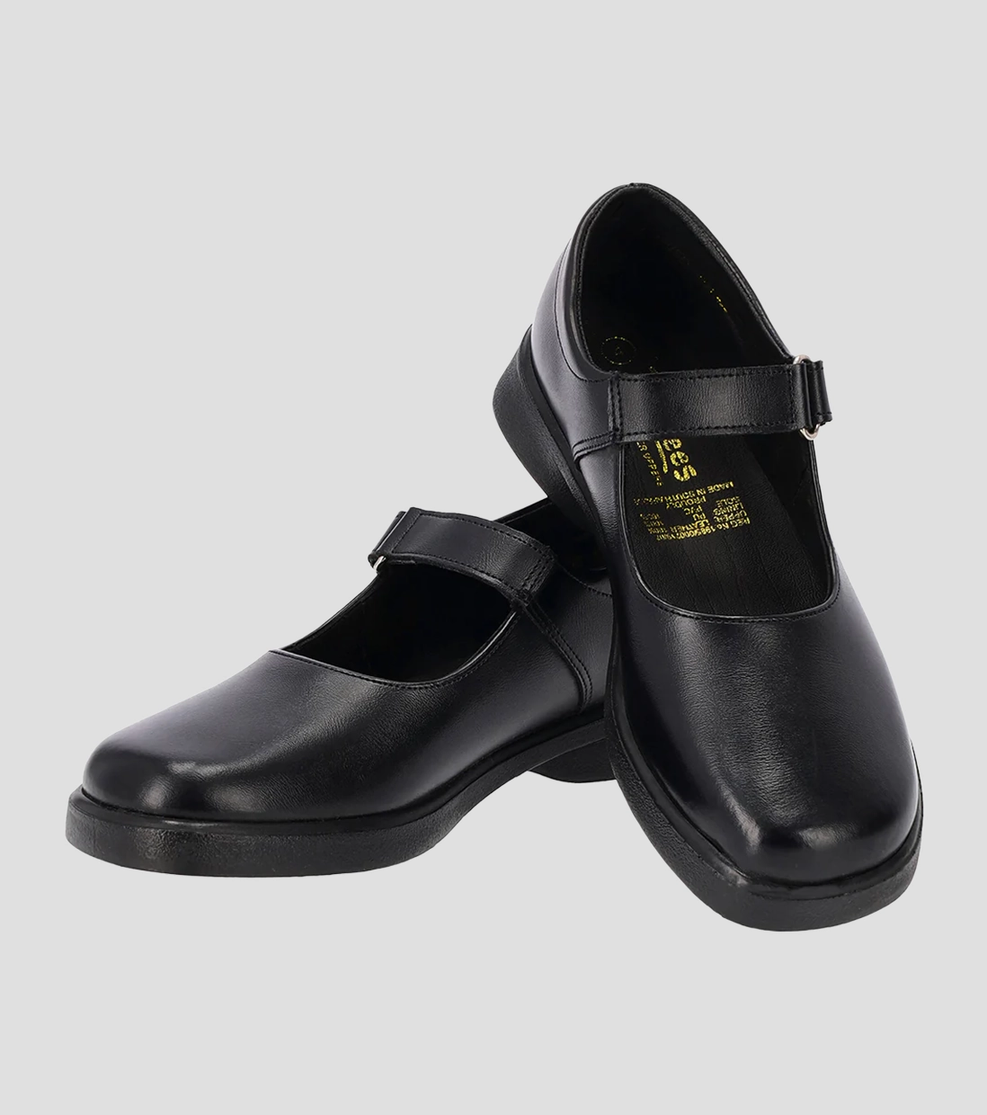 The Toughees Vivianne Ladies Velcro Strap School Shoes in Black feature genuine leather uppers with antifungal and antibacterial properties, promoting foot health. They include a convenient velcro strap for easy adjustment and secure fastening.